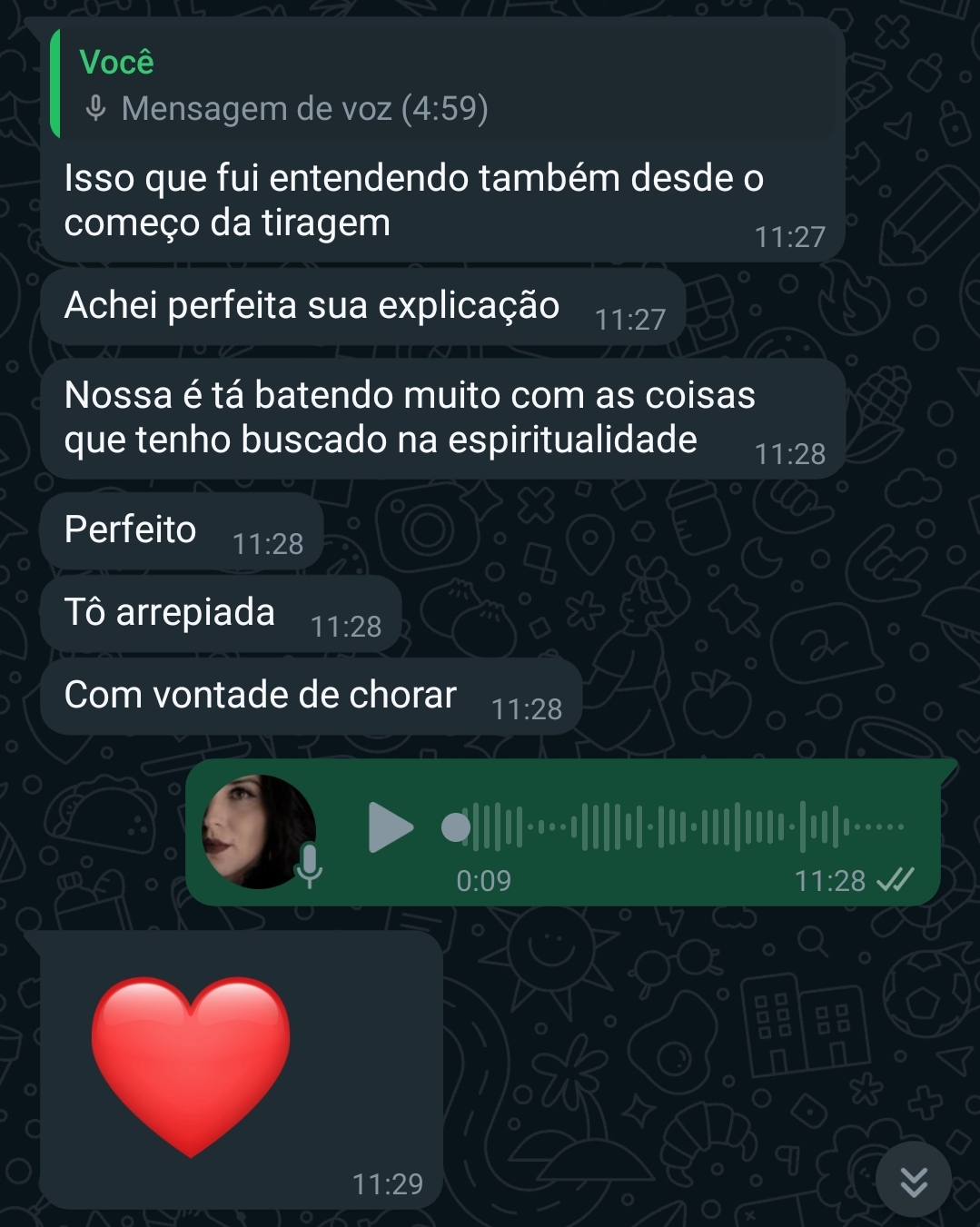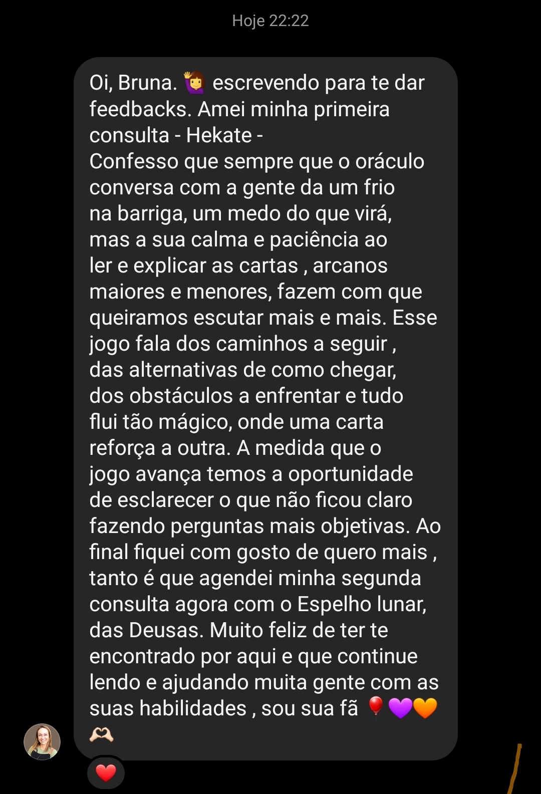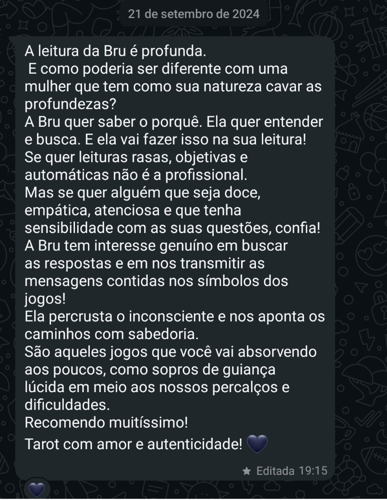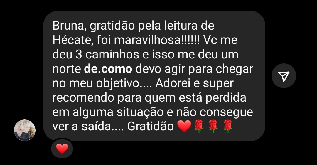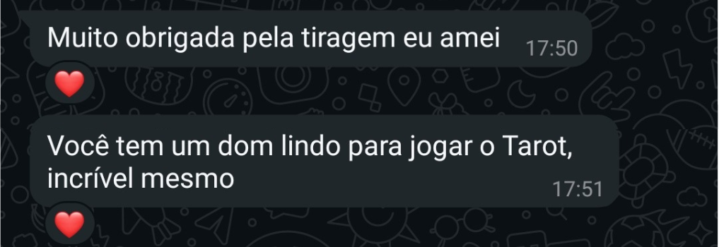 Amo oráculos, especialmente o tarot, que jogo e estudo diariamente há mais de 8 anos.